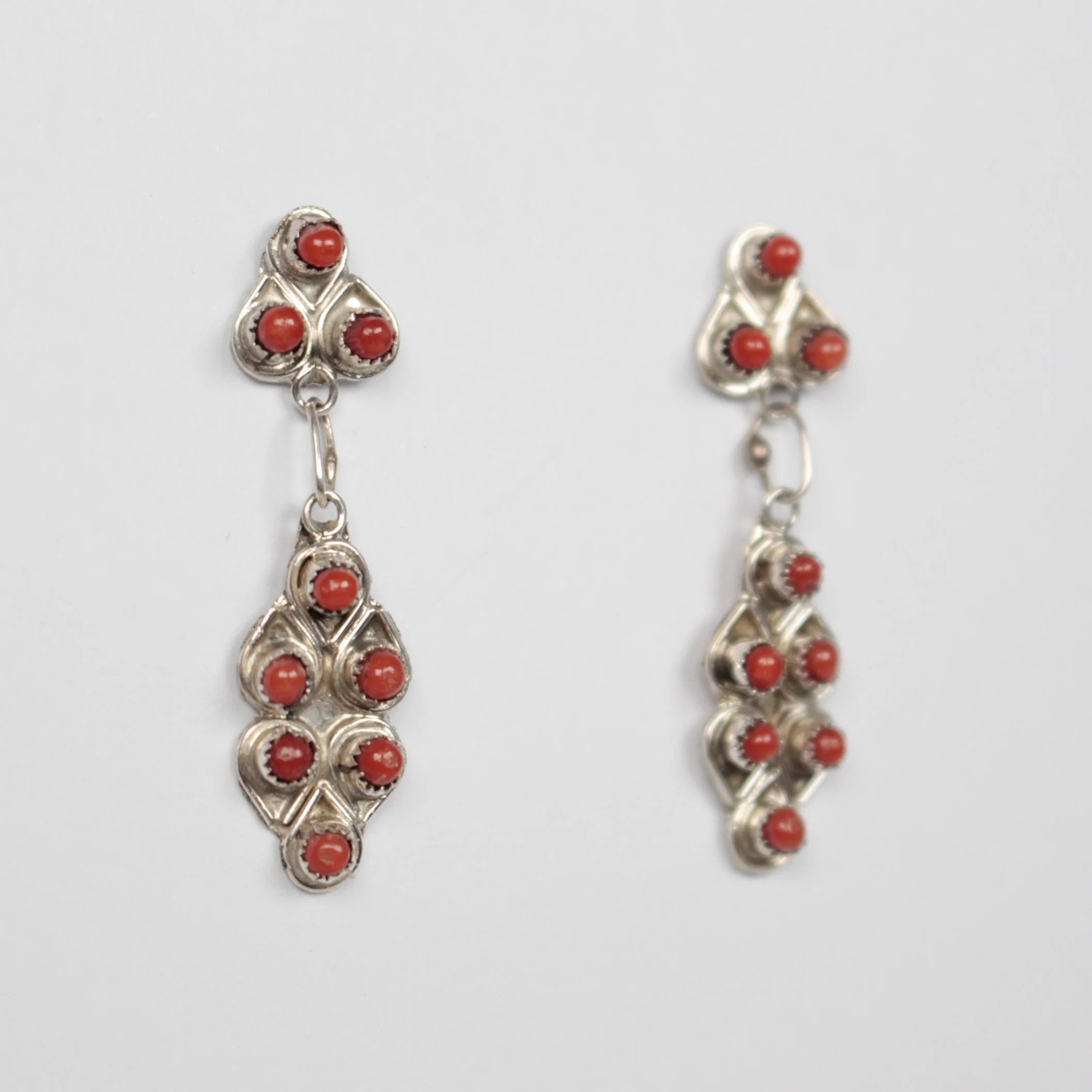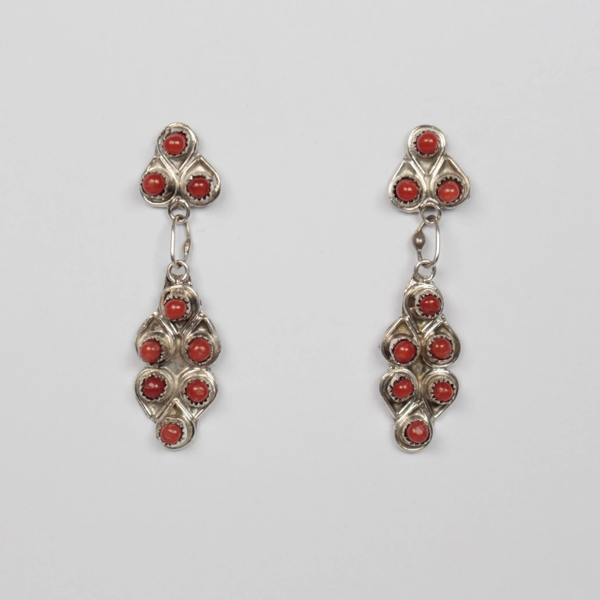 Native American Earrings › Zuni Petit Point Coral Drops Zuni Petit Point Coral Drops $178.00 Handmade with Sterling Silver and Coral. Length: 3.5cmWidth: 0.8cmCode: C5108 Handmade with Sterling Silver and Coral. Length: 3.5cmWidth: 0.8cmCode: C5108 Add To Cart Added!